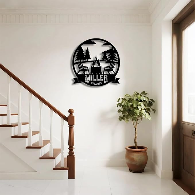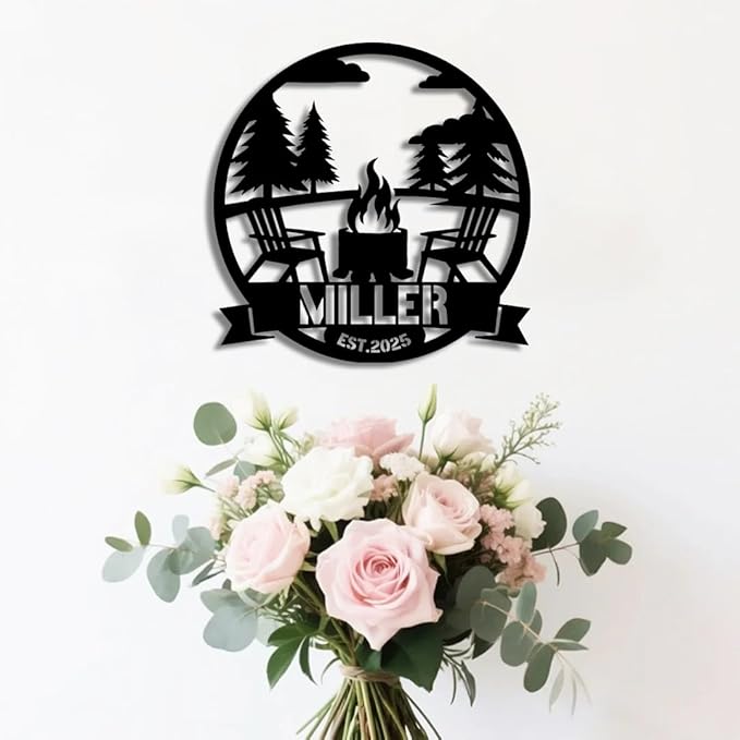 Personalized Campfire Metal Name Sign | Custom Camping Metal Signs | Family Wall Art & Split Letter Name | Wedding Gift & Anniversary | Indoor Decor Gift for Women, Men, Wife, Parents, Couple
