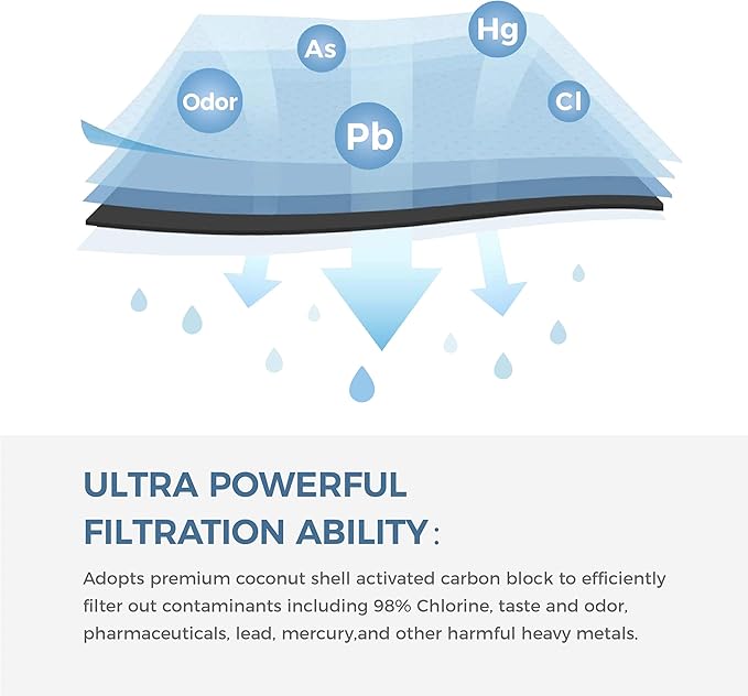 - [Advanced Filtration Power] High-quality carbon removes chlorine, odors, and other impurities—delivering clean, mineral-rich water