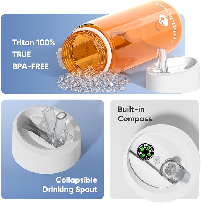 - [Built-in Compass] - Perfect for camping and outdoor exploration, the water bottle is equipped with a built-in compass on its top, helping you navigate and stay oriented during your adventures.