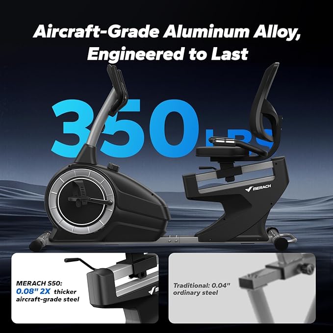 MERACH Recumbent Exercise Bikes for home, Light Commercial High-end Recumbent Bike for Seniors Adults, Magnetic Recumbent Exercise Bike with Smart Bluetooth and Exclusive App, LCD, Heart Rate Handle