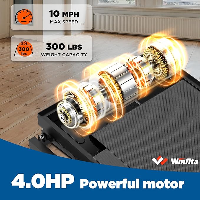 - 4.0HP Quiet Motor: Power meets silence, our 4.0HP brushless motor delivers gym-level power (up to 10MPH and 300lbs) with noise levels below 45dB. Train anytime without waking the baby or annoying downstairs neighbors.