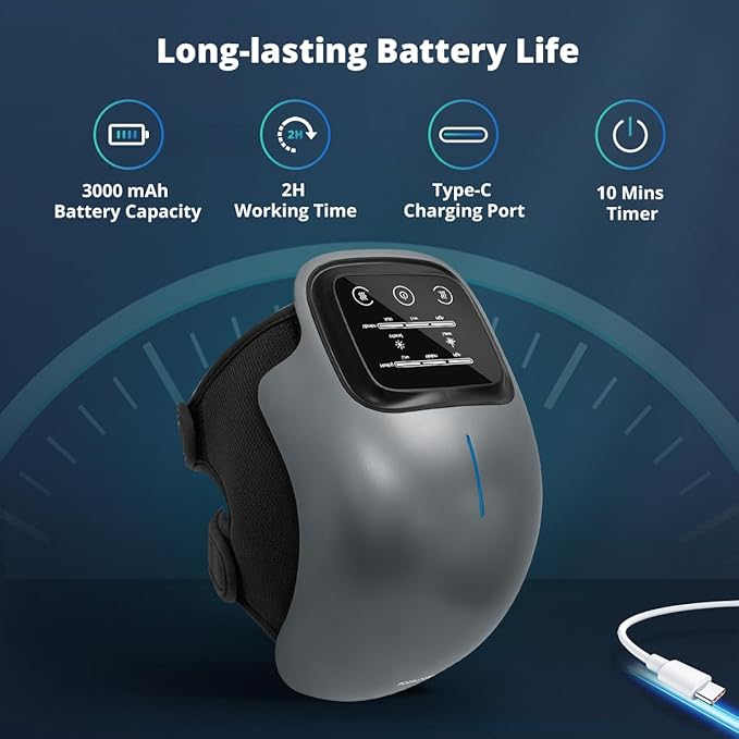 - [Soothing Heat] The Heated Knee Massager has three heat settings from 104–136°F (40–58°C) provide steady warmth to your knees, easing tightness, enhancing comfort, and helping you relax.