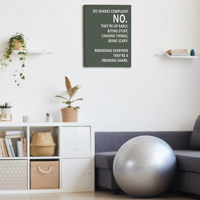 Rusenbao Gym Motivational Workout Wall Art, Home Gym Decor, Inspirational Workout Room Decor, Do Sharks Complain About Monday, Canvas Wall Art for Exercise Fitness Room Office, 11x14 inch(Green)