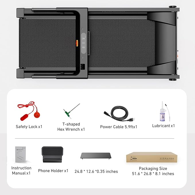 - 3.0 HP Powerful Quiet Motor: This compact running treadmills improved brushless motor with 3.0 HP provides efficient, reliable, and low-maintenance operation, while providing speeds of 7.6 MPH and emitting only 40-65 dB of noise, Designed for home/office use without disturbing your downstairs or next-doors