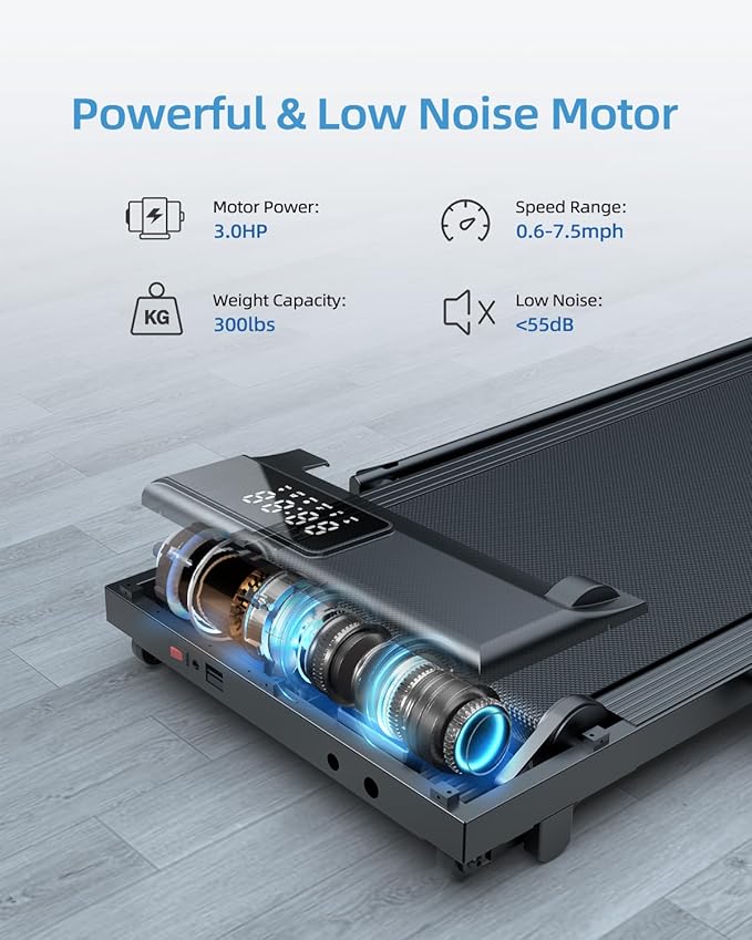 - Wider& 5-Layer Running Belt: We provide a large 43.3*16 inch area. The running belt of the home smart treadmill is longer than others, so you don't have to worry about falling, and this under desk treadmill is designed with a 5-layer anti-skid running belt, which can enhance the safety of users during exercise. This product is impeccable for both office workers and students