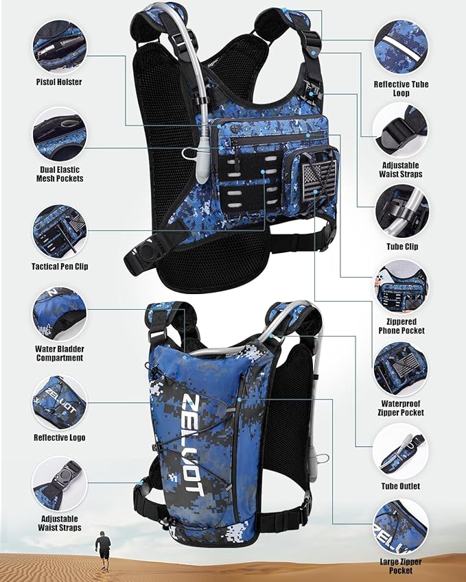 - Stay Hydrated on the Run - Zelvot running hydration vest includes a 2L water bladder made from food-grade materials, 100% BPA & PVC-free. Designed with a high-flow bite valve for hands-free drinking, it keeps you hydrated without breaking your stride. Perfect for trails, races, and long-distance runs.
