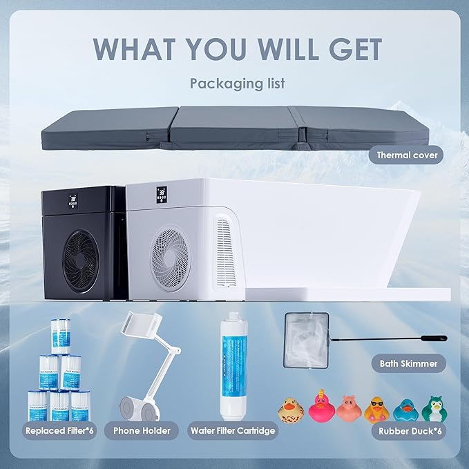- Plug-and-Plunge Convenience – Fully self-contained design with integrated cooling and filtration system. No plumbing or installation required—simply plug it in,fill with water,and start your cold therapy session immediately