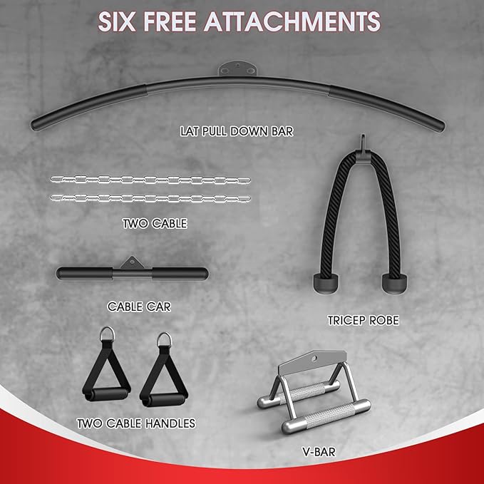 - HOME GYM SYSTEM: Constructed from commercial grade steel.This cable machine weights more than 200lbs which provides you more stable and safer workout experience. Gym size design offers your versatile workouts.