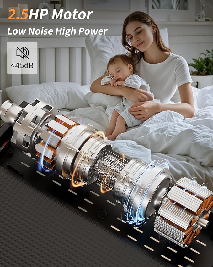 - 2.5HP MOTOR:This under desk treadmill is equipped with a 2.5HP high power motor that produces no more than 45dB of sound when running, so you can enjoy your workout late at night or early in the morning without disturbing others, can load a max weight up to 330lbs capacity