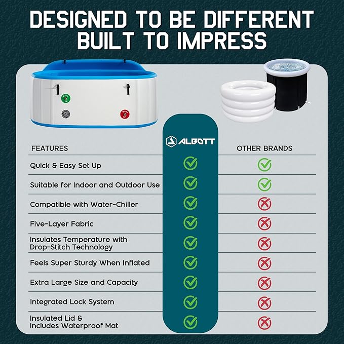 - Portable & Easy to Set Up: Our ice tub comes with an air pump for quick inflation, deflation, and hassle-free storage. Whether you're recovering at home, at the gym, or outdoors, its lightweight, compact design makes it easy to take anywhere