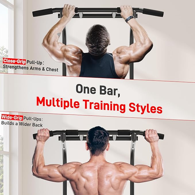 Outdoor Basic Power Tower Max Pull Up Bar and Dip Station - Heavy Duty 1600LBS Weight Capacity, Reinforced Steel Frame for Maximum Stability, Multi-Function Home Gym Equipment with Adjustable Height for Strength Training Fitness